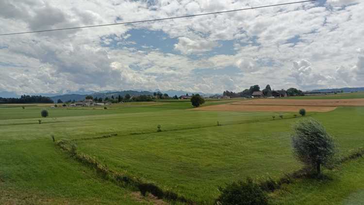 |  | | Widok z okna w drodze pociągiem do Thun | |