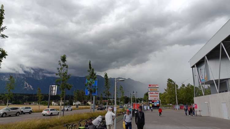 |  | | Widok na Alpy po przyjeździe autobusem pod stadion | |