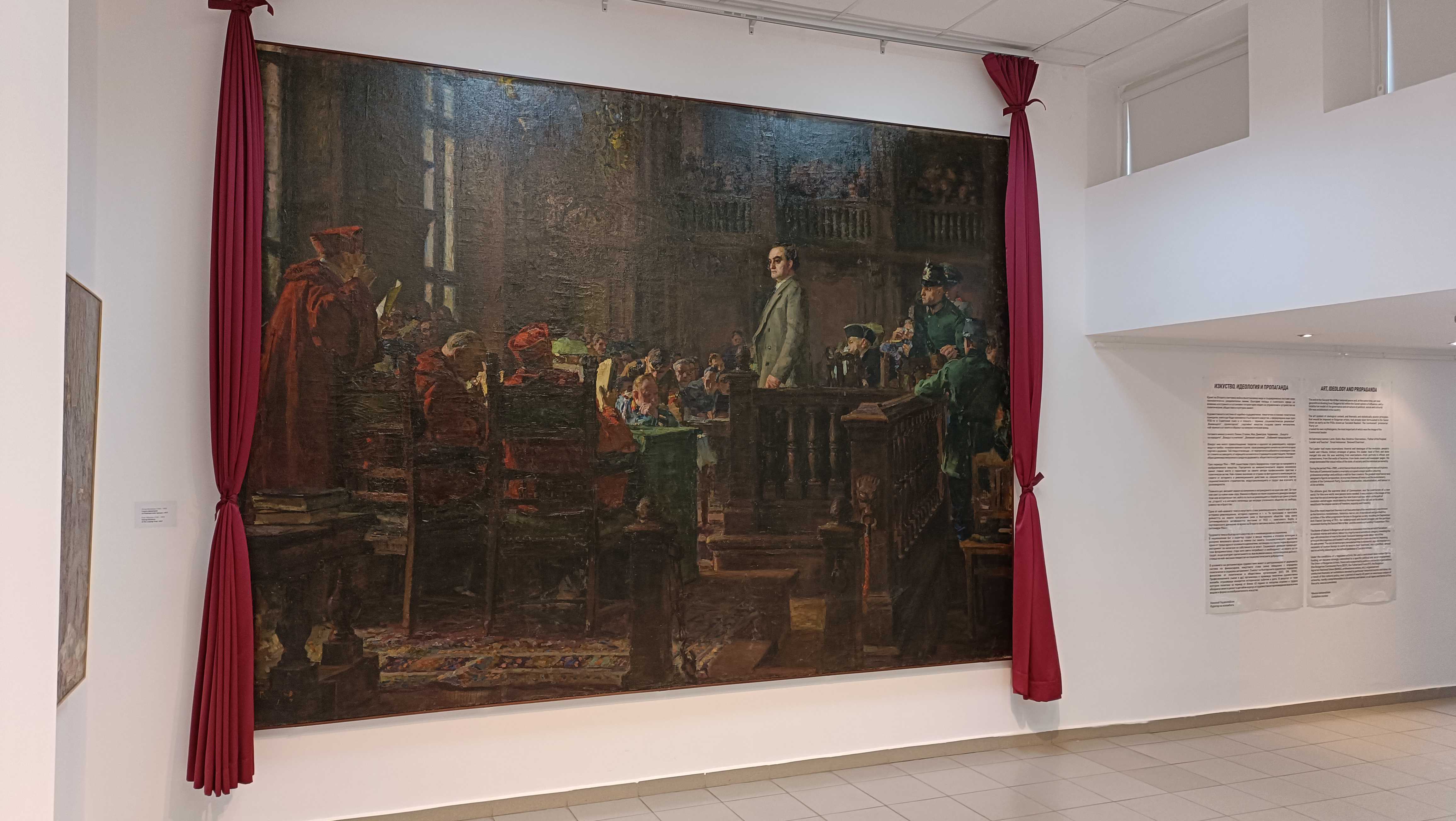 |  | | Wystawa w Ministerstwie Kultury - proces Giorgiego Michajłowa Dymitrowa namalowany na obrazie | |