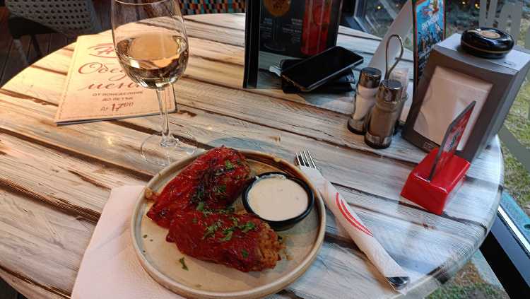 |  | | Bułgarski posiłek (tak mi się przynajmniej wydawało) - faszerowane papryki | |