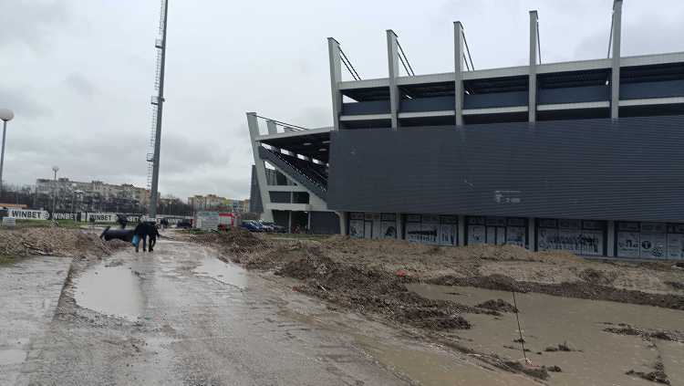 |  | | Droga na stadion - jeszcze nie wszystko zostało ukończone, dlatego wygląda to... specyficznie | |