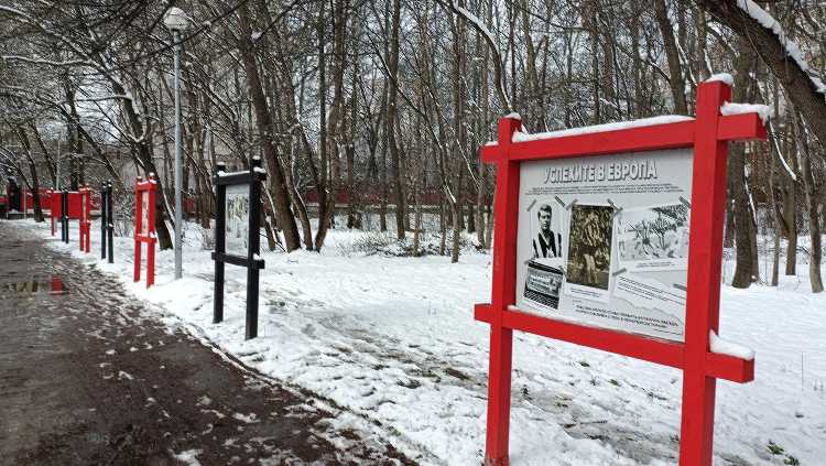 |  | | Alejka z wystawą poświęconą Nikoli Kotkowowi (z tego co zrozumiałem, legenda Łokomotiwu) | |