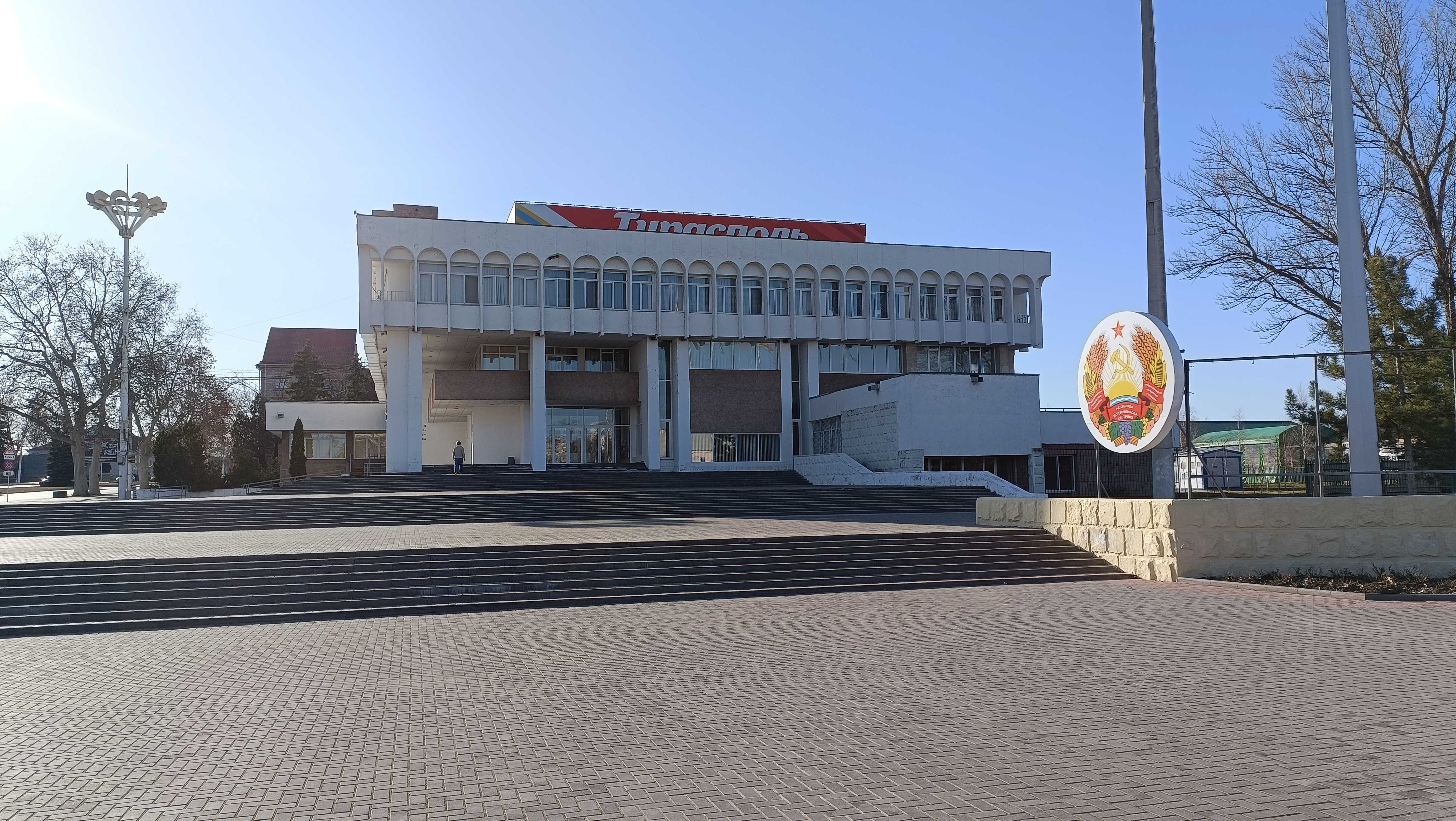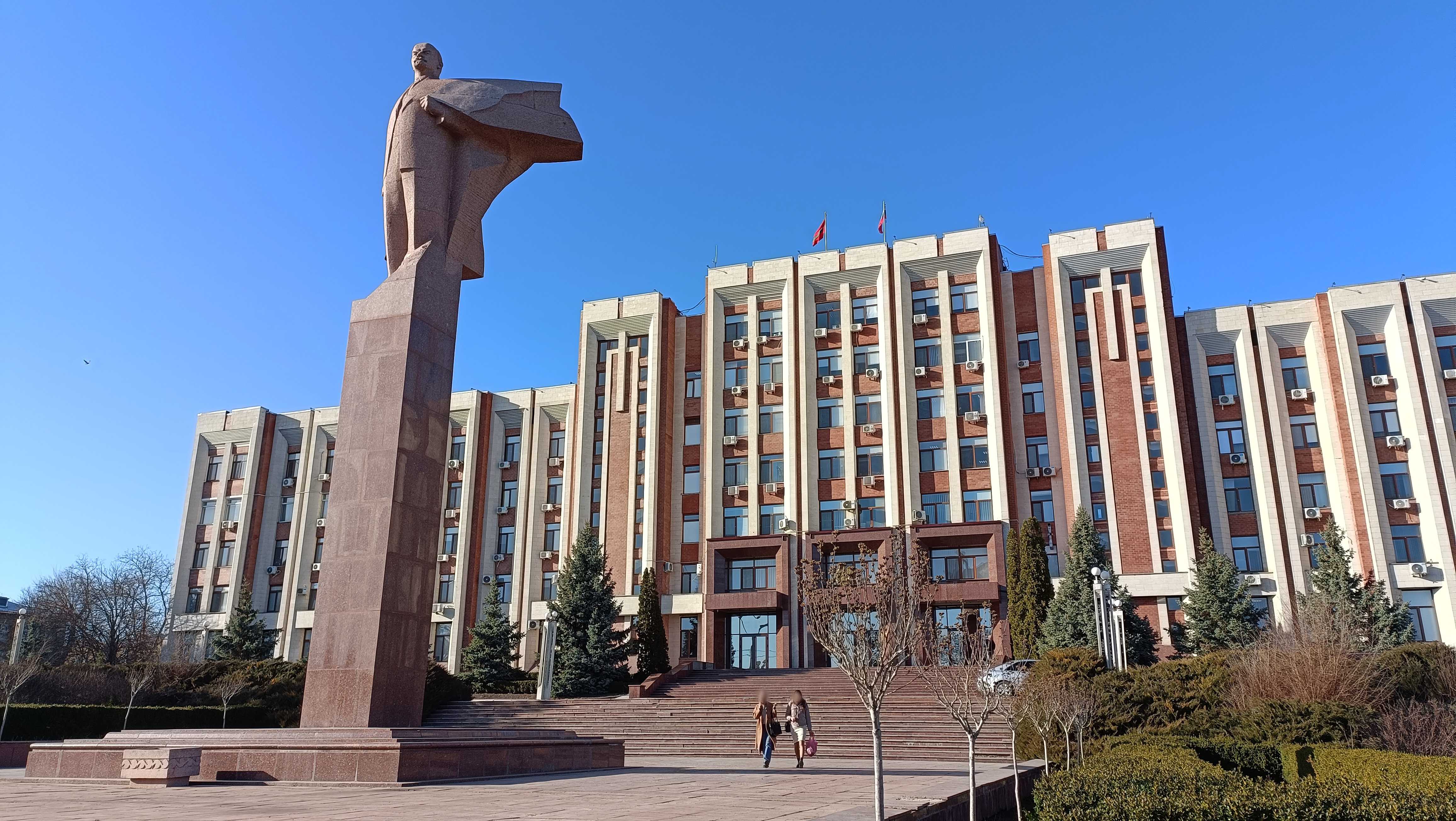 |  | | Siedziba Rządu Naddniestrza i pomnik Lenina (co ciekawe, budynek ten znajduje się na 50-rublowym banknocie, ale Lenina już tam nie ma) | |