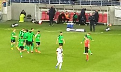 Aż tu nagle, w 32. minucie, miała miejsce wrzutka Pogoni z wolnego (choć według mnie wolnego nie powinno być, ponieważ Gerson w tamtej sytuacji wcale nie faulował) i całkowicie odpuszczony przez Komora Matras wbił głową gola na 0:1. Po kilku minutach rozczarowanie zostało zastąpione przez euforię, ponieważ niezawodny Grzesiek Boninho wolejem z pierwszej piłki i z ostrego kąta wykończył... rzut z autu (!) Niki Dzalamidze. Nie nacieszyliśmy się jednak zwycięskim remisem zbyt długo, bo po paru minutach Pogoń dostała korner (cudem było to, że w ogóle do kornera doszło, ponieważ stoperzy Górnika całkowicie odpuścili gracza Pogoni, który niekryty otrzymał podanie na 16. metrze - tylko dzięki geniuszowi Prusaka nie skończyło się to golem). Po dośrodkowaniu z narożnika Spas Delew uderzył z kilkunastu metrów po ziemi w krótki róg i pokonał Prusaka, choć ten miał piłkę na ręce. Parę minut później sędzia odgwizdał koniec pierwszej połowy, po której Pogoń dość niezasłużenie prowadziła.