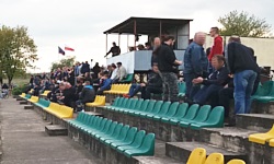 Po przejściu przez bramę główną należało dojść na trybunę. Ze względu na to, że droga od niezbyt dużego budynku klubowego na boisko była odgrodzona barierkami, droga na trybunę wiodła za budynkiem - zaplecze budynku klubowego było niezbyt efektowne, ponieważ szło się zwykłą ścieżynką, wśród krzaków i gruzu. Na stadionie znajdowały się trzy sektory - trybuna główna składała się z trzech rzędów zielono-żółtych krzesełek ciągnących się wzdłuż linii bocznej. Na środku sektora znajdowała się blaszana zadaszona budka spikera stadionowego. Naprzeciw tej trybuny znajdował się niewielki sektor z dwoma rzędami krzesełek, ciągnący się od linii końcowej boiska do pierwszej ławki rezerwowych, a także niewielki ogrodzony sektor gości, na który składało się 30 betonowych miejsc stojących (właśnie, to mnie zawsze zawsze zastanawiało - po co krzesełka na sektorze gości?). Ze względu na pojemność sektora gości, stawiam, że cały stadion liczy 600 miejsc.