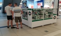 Jak już wspomniałem we wstępie, na baraż dotarłem z innego meczu, który odbywał się dosłownie kilkadziesiąt metrów dalej, tak więc wyjątkowo obędzie się bez historii o błądzeniu w miejskiej dżungli. Przed niedzielnym meczowaniem wybrałem się przy okazji do tzw. Galerii Słoneczna, aby zakupić pamiątki Radomiaka na stoisku o nazwie „Zielona Wyspa”. Moim łupem padło parę energy drinków, kubek oraz Gołąb, który jest oficjalną maskotką Radomiaka.