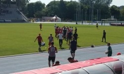 Cóż, to był jeden z czynników, przez które zastanawiałem się, czy jest sens wybierać się na mecz Radomiaka. Stadion Radomiaka obecnie jest jednym wielkim placem budowy, a drużyna rozgrywa mecze na obiekcie MOSiR Radom na Narutowicza. Czyli innymi słowy… na obiekcie Broni Radom. Owszem, bardzo lubię ten stadion, ale te niebiesko-biało-czerwone krzesełka to niezbyt adekwatna sceneria dla meczów Radomiaka. Ciekawostka: stadion nie spełnia wymogów Nice 1. Ligi (ze względu na niewystarczające sztuczne oświetlenie), co jest powodem do tworzenia całkiem sensownych teorii spiskowych, że Radomiak celowo odpuszcza w tym sezonie walkę awans, aby nie musieć rozgrywać 1.-ligowych meczów w… no właśnie. Kielcach? Puławach? Ostrowcu? Warszawie?Na tym meczu natknąłem się też na coś, czego już dawno nie widziałem, mianowicie… na kolejkę do bramek biletowych. Na meczach, na których bywam, jest bowiem z reguły mniej widzów niż na kolejce zamieszczonej na zdjęciu. Kiedy udało mi się po dobrych kilku minutach stania w kolejce przejść przez bramkę biletową, pierwszy raz w życiu nie przeszedłem kontroli u ochrony stadionu. Ochrona przyczepiła się do pełnej puszki z energy drinkiem Radomiaka, co w sumie było całkiem uzasadnione – i byłem gotów się jej pozbyć. Ale oprócz tego przyczepiła się również do pustej puszki po energy drinku Radomiaka, którą też miałem z sobą w charakterze „pamiątki z Radomia”. Przyczepili się nawet do kubka, który parę godzin wcześniej zakupiłem w Galerii Słonecznej (na szczęście Gołąb był nietykalny). Zostałem więc zawrócony do punktu depozytowego (w międzyczasie kolejka do bramek biletowych zdążyła wydłużyć się dwukrotnie, ale na szczęście udało mi się wcisnąć bez ponownego stania w kolejce).Obiekt MOSiR Radom Stadion Broni to bardzo fajny obiekt. Schludny, pachnący świeżością stadion lekkoatletyczny z dwoma trybunami (i małym sektorem gości), w sumie na nieco ponad 4000 osób. Na stadionie można zakupić lemoniadę oraz giętą z grilla, a na uwagę zasługuje również estetyczna tablica wyników. Wszystko byłoby OK, gdyby nie fakt, że jestem kretynem i w tak gorący dzień jak ten wybrałem sobie miejsce na trybunie północnej. Nie chciałem się bowiem pchać na trybunę południową, gdzie zwykle zasiadają bardziej zagorzali kibice. Moje rozumowanie było jednak dość ułomne, bowiem…
