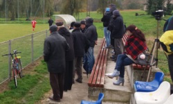 W trakcie pierwszej połowy zgromadzeni na sektorze ławkowym koneserzy futbolu rozprawiali głównie o obecnej sytuacji w Legii i z początku miałem wrażenie, że dzisiejszy mecz był dla nich jedynie dobrym pretekstem, aby zgromadzić się w jednym miejscu i porozmawiać o Romeo Jozaku, czy jego niedawnej opinii, że Warszawianie grają jak kobiety. Być może chcieli zdobyć odpowiedni materiał, aby móc skonfrontować zdanie Chorwata z rzeczywistością. Żeby nie było – nie olewali oni samego meczu, śledzili wydarzenia boiskowe, ale w pierwszej połowie nie przejawiali oni wielkiego zaangażowania emocjonalnego. Jeden z nich podsumował grę Wierzchowisk z pierwszej połowy słowami „brakuje nam napastnika” (tydzień po wygranej Wierzchowisk z Bronowianką 10:0).