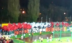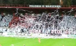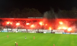 Jeśli chodzi o flagi, z racji zajmowanego przeze mnie miejsca nie do końca wiem, co Widzew rozwinął na trybunie Głównej. Na samym sektorze gości wisiało niewiele, głównie niebieski transparent z żółtym tekstem WŁOSEK, TRZYMAJ SIĘ . Na Kamiennej wisiały flagi KONWIKTORSKA 6 , DUMA STOLICY , Polonia Warszawa , FANATICS POLONIA , DZIECI WARSZAWY oraz coś pomniejszego, czego nie rozszyfrowałem. Jeśli chodzi o śpiewy, jeszcze przed meczem obydwie strony wspólnie odśpiewały LTSK , ponadto kibiców łączyła też przyśpiewka Jebać, jebać, jebać ŁKS . Tuż przed pierwszym gwizdkiem Polonia odśpiewała swój hymn (za trzeciej ligi smak brzmi w obecnej sytuacji dość specyficznie), a później zabrała się do śpiewania głównie tego, co już zdążyłem przytoczyć przy okazji innej relacji z K6. Nie pamiętam, co Widzew śpiewał w trakcie meczu (nie nadstawiałem zbytnio uszu, ponieważ większość piosenek słyszałem już w kwietniu będąc na Widzewie; no i teraz przez to nie pamiętam, co dokładnie było wykonywane), pamiętam za to, że pozdrawiał zgody. Pozdrowiono Niebieskich (cała piosenka hej, Niebiescy, ole... , później też Ruch, Ruch, HKS! ), Elanę, również Wisłę Kraków. Słysząc pozdrowienia dla Wisły, kilku kibiców na Głównej zaczęło śpiewać jakiś improwizowany bluzg w stylu Widzew, ty cwelu... . Polonia z kolei pozdrowiła Real Saragossa oraz Sandecję. Zgoda z Cracovią została bowiem niedawno zakończona; podobno nie miało to związku z dzisiejszym meczem, ale ciężko oprzeć się wrażeniu, że mogło mieć.