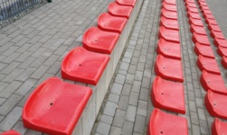 Bardzo lubię obiekt Ursusa, ponieważ jest on idealnie skrojony na miarę takiego klubu. Solidny, trzecioligowy klub (naprawdę solidnie zakorzeniony w trzeciej mazowieckiej, spędza tu już 8. sezon - choć w zeszłym sezonie był bliski spadku do czwartej ligi, a przed katastrofą uratowało go zwycięstwo w ostatniej kolejce z walczącym o awans ŁKS-em i surrealistyczna wygrana Huraganu Wołomin z rezerwami Jagiellonii), bez mocarstwowych planów, za to bardzo poukładany. Obiekt liczy oficjalnie 1020 miejsc siedzących, a na tę liczbę składa się trybuna główna z pomarańczowymi i niebieskimi krzesełkami układającymi się w wyraz URSUS, niewielka trybunka pod wyświetlaczem (na wyświetlaczu niestety nie można wyświetlać nazw drużyn i na stałe znajduje się tam napis URSUS - GOŚCIE ), gdzie czasami tworzy się młyn, oraz ogrodzony sektor gości. Na stadionie jest niestety bieżnia, ale ze względu na jej nienaganny stan i intensywnie bordowy kolor akurat w tym przypadku komponuje się ona przynajmniej z kolorystyką stadionu. Po rundzie jesiennej za pieniądze z budżetu obywatelskiego zainstalowano na trybunie głównej całkiem estetyczne częściowe zadaszenie w kolorze niebieskim, ogrodzono stadion i postawiono bramki biletowe. Oczywiście to nie jest tak, że wcześniej łatwo było wejść na mecz na lewo, bo sam kompleks OSiR jest ogrodzony. Tyle tylko, że sprzedaż biletów i kontrolę przeprowadzano wcześniej w bramie OSiR, a jest wiele osób, które udają się na teren kompleksu np. plac zabaw, mini-park linowy na pływalnię albo pograć w tenisa. Teraz stadion został wyodrębniony z OSiR w nieco bardziej profesjonalny sposób.OK, skoro już opisałem stadion, to czas na typowy kreskówkowy gag:- To gdzie odbędzie się dzisiejszy mecz? - Widzisz ten stadion? Taki ładny, z pomarańczową trybuną i niebieskim dachem? - Tak.- To nie tam.Ze względu na ostatnie wariacje pogodowe, murawa nie nadawała się jeszcze do gry (albo też chciano przełożyć oficjalne otwarcie odnowionej trybuny na lepsze warunki niż 5'C), dlatego też dzisiejszy mecz odbywał się na bocznym boisku ze sztuczną murawą. W trzeciej lidze coś takiego jest dopuszczalne. Tutaj opis stadionu nie nastręcza większych trudności. Trybuna jest jedna - cztery rzędy niezbyt wygodnych czerwonych siedzisk bez oparcia. Za to bardzo schludna, ponieważ siedzenia są nowe, barierki też, a stopnie trybuny wyłożone są równą kostką brukową. Mecz można również bez problemu obejrzeć za darmo - zza ogrodzenia za jedną z bramek, lub ewentualnie wzdłuż linii bocznej (co może być nieco problematyczne, ponieważ chyba znajduje się tam droga). Wyświetlacz jest identyczny jak na boisku głównym, z tym, że znajdują się na niej tym razem napisy GOŚCIE - GOSPODARZE (w tej kolejności).Należy też wspomnieć (trochę nie po kolei, ale nie chciałem umieszczać tego elementu tuż obok suchych żartów), że na terenie OSiR znajduje się też stała wystawa o Krzysztofie Nowaku (Numer 10 naszych serc ), najsłynniejszym wychowanku klubu RKS Ursus. Krzystof Nowak spędził w Ursusie całą juniorską karierę, skąd ruszył w świat większej piłki, grając najpierw w niesławnym Sokole/Miliarderze z Pniew/Tych, następnie w Panachaiki, Legii (tu akurat tylko 1 mecz), Atletico Paranense, w końcu trafiając do VfL Wolfsburg, gdzie przez trzy kolejne sezony był podstawowym zawodnikiem. Jego karierę, a następnie życie przedwcześnie zakończyła choroba ALS.