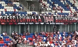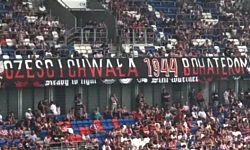 W związku z tym, że był to ostatni weekend lipca, na trybunie pojawił się również transparent upamiętniający bohaterów Powstania Warszawskiego. Jeszcze przed meczem na górnym pierścieniu pojawiła się estetycznie wykonana flaga z hasłem CZEŚĆ I CHWAŁA BOCHATEROM . Jak można się domyślić, wisiała na trybunie jedynie kilka minut, po czym ktoś dostrzegł fatalny błąd i szybko została zwinięta; powróciła ona na trybunę na początku drugiej połowy, po dokonaniu niezbędnej korekty ortograficznej.