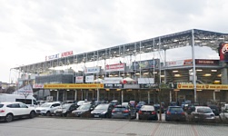 Powtórzę to, co pisałem już wielokrotnie przy okazji opisywania ekstraklasowych stadionów - dokładne opisywanie ich na tej stronie nie ma większego sensu, ponieważ stadion ten można zobaczyć w telewizji raz na dwa tygodnie. Schludny obiekt, z dość neutralnymi szarymi krzesełkami, z pierścieniem dolnym oraz górnym. Co ciekawe, na jednej z zabramkowych trybun mieści się młyn i znajduje się on... na górnym pierścieniu. Najprawdopodobniej jest to spowodowane tym, że dolny pierścień trybuny jest przedzielony w połowie jakimś wjazdem samochodowym, co sprawia, że nie można ustawić tam gniazda. Dlatego gniazdo znajduje się na górnym pierścieniu, na samym środku trybuny. Dokładnie nad tym wjazdem, co oznacza, że gdyby gniazdowy stamtąd spadł, przeleciałby jakieś 12-14 metrów i spadł na beton. W każdym razie, przy moim umiarkowanym lęku wysokosci, nie mogłem na niego patrzeć.