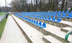 Na stadionie brak jest tablicy wyników, ale to nie jest duży problem (szczególnie, że za wynikiem można było dziś spokojnie nadążyć, a stadionowy spiker kilka razy przypominał widzom aktualny stan meczu). To, co uznałem za dużo większy problem to fakt, że trybuna znajduje się w odległości jakichś dziesięciu metrów od linii bocznej boiska. Pomiędzy niewysokim ogrodzeniem trybuny a linią boczną boiska znajduje się... trawa, w sumie niewiele różniąca się wyglądem od stadionowej murawy. Wygląda to tak, jakby plac gry specjalnie znajdował się z dala od trybuny. Oczywiście zdaję sobie sprawę, że ileś lat temu w tym miejscu znajdowała się pewnie bieżnia, ale... już jej nie ma, naprawdę nie można było przerobić tego trawnika na profesjonalną murawę i dzięki temu przesunąć boisko w stronę trybuny?