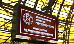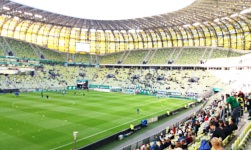 Stadion Energa. Prawdopodobnie najładniejszy w Polsce, ewentualnie jestem skłonny uznać go za drugi najładniejszy w Polsce, tuż za Narodowym. Z zewnątrz piękny, złoty kolor, od środka dach również wygląda znakomicie. Siedzenia bardzo wygodne, widok z nich jest znakomity, nawet jeśli komuś trafiło się miejsce w niezbyt dobrze ulokowanym sektorze N (na wysokości pola karnego). Do tego cztery wielkie telebimy, na których prezentowane są znakomite treści multimedialne. Po prostu... piękny stadion. Raz na dwa tygodnie można go zobaczyć w nc+, a w Internecie są pewnie tysiące doskonałych zdjęć, oddających jego jakość. Dlatego też w tej sekcji opiszę coś innego.