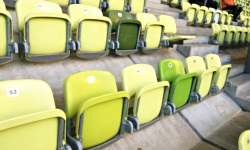 Otóż w trakcie meczu spiker stadionowy zachęcał do zobaczenia meczu rezerw Lechii, który miał się odbyć nazajutrz na stadionie przy ulicy Traugutta. Oczywiście komunikat ten miał na celu przede wszystkim zagłuszenie śpiewów o starych kurwach , ale efektem ubocznym tego zabiegu było to, że poczułem się zachęcony wizją zobaczenia starego stadionu Lechii. Nie zaliczyłem sobie tego jako obejrzany mecz, ponieważ z powodów logistycznych mogłem zobaczyć tylko pierwszą połowę - pomimo to uważam, że naprawdę było warto. Stary stadion Lechii jest bardzo dobrze wtopiony w tkankę miejską - obiekt jest ogrodzony drzewami, tuż za terenem stadionu znajdują się już kamienice. Stadion jest zbudowany na planie owalu, jak typowy obiekt z bieżnią - tyle że w przypadku tego stadionu nie ma już na nim bieżni, a całą płytę pokrywa równa, zadbana murawa (nawet daleko za bramkami). Wszystkie trybuny są tej samej wysokości, pokryte biało-zielonymi krzesełkami - łącznie jest ich około 11 tysięcy, co sprawia, że stadion nie pomieściłby wszystkich zainteresowanych sobotnim meczem. Z całego stadionu zadaszona jest tylko zachodnia trybuna (na której biało-zielone krzesełka układają się w słowo LECHIA ) - i to nie w pełni. Dodatkowo zadaszenie jest starego typu - położone dość nisko nad trybuną i wsparte wieloma filarami, które pewnie lekko utrudniają ogladanie meczu. Za północną trybuną znajduje się wielka czarna tablica wyników, na której wyświetlane są ledwo dostrzegalną czcionką nazwy drużyn, a takze - już nieco większymi znakami - aktualny wynik i czas.