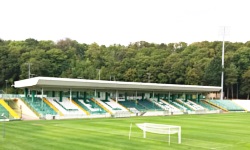 Tyle że rezerwy wcale nie grały na głównym obiekcie, a na boisku bocznym. Tutaj jest niewiele do opowiadania. Na plus należy ocenić naturalną murawę, na minus dwumetrowe ogrodzenie, które odgradza boisko ze wszystkich stron, również od strony... trybuny. Nic dziwnego, że część widzów wybiera stanie od strony parkingu, gdzie tak samo znajdują się za ogrodzeniem, jednak mogą obserwować mecz z wysokiego nasypu ziemnego.