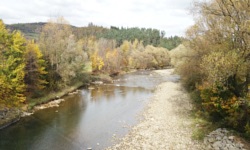 Przy okazji, sam mecz zakończył się ok. godziny 13, co oznaczało, że do pociągu powrotnego (odjazd o 14:27) miałem jeszcze półtorej godziny. W tym czasie obszedłem miejscowość, zdjąłem z drzewa niskobudżetowy plakat zapraszający na dzisiejszy mecz, zjadłem parę niezbyt imponujących w smaku oscypków i udałem się na pobliskie wzgórze w celu zdobycia punktu widokowego. Nie udało mi się osiągnąć tego celu ze względu na brak czasu, a poza tym, jak zwykle pomyliłem drogi i skończyłem na polu, gdzie musiałem uciekać przed traktorem wyposażonym w rozrzutnik obornika.