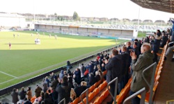 North Stand to trybuna przeznaczona podobno dla gości (w trakcie dzisiejszego meczu była ona zamknięta). Jest ona bardzo podobna do West Stand z tą różnicą, że jako trybuna zabramkowa ma ona mniejszą pojemność (1890 krzesełek - dlaczego nie 1888?) i jest od niej nowsza, a więc pomarańczowe krzesełka mają bardziej żywy kolor. Zgodnie z informacjami z Internetu, jej postawienie zajęło zaledwie 6 tygodni. Stadion domyka czwarta trybuna (Bees Terrace ), która jest oldschoolowym niskim zadaszonym blaszakiem z miejscami wyłącznie stojącymi (docelowo ma tam stać taka sama trybuna jak North Stand). Na nią również tego dnia nie sprzedawano biletów.