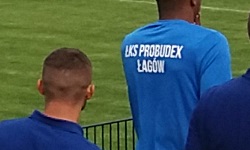 To, co nie było tego dnia jak zwykle , to oczywiście sektor gości, który ze względu na różne covidowe ograniczenia, był tego dnia zamknięty. A szkoda, bo w normalnych warunkach po Stalówce można byłoby się spodziewać fajnej grupy wyjazdowej. Nie oznacza to, że na meczu nie było nikogo ze Stalowej - np. przed nami siedziała incognito kilkuosobowa grupka gości z Podkarpacia, ale o tym, że są to kibice gości, dowiedzieliśmy się jedynie z urywków ich rozmów. Co do szeroko pojętych gości, kilkanaście minut po pierwszym gwizdku na trybunach pokazała się... cała drużyna ŁKS-u Łagów w dresach klubowych (wśród których wyglądem i posturą wyróżniał się oczywiście Amarildo Balotelli - swoją drogą, bardzo ciekawy i odważny wybór przydomku). Beniaminek trzeciej ligi następnego dnia miał grać mecz w Chełmie i po drodze postanowili widocznie zajrzeć do Świdnika. Niezależnie od tego, czy było to motywowane chęcią przeanalizowania gry przeciwnika (z którym zagrają w listopadzie), czy chęcią popatrzenia na mecz, piłkarze z Łagowa naprawdę muszą lubić swoje zajęcie.