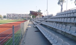 Stadion Miejski w Nowym Targu dość oryginalnie nosi imię Marszałka Jóżefa Piłsudskiego (nie prowadzę oficjalnych statystyk, ale jest to chyba najpopularniejszy z patronów odwiedzanych przeze mnie stadionów... i w sumie, ciężko się temu dziwić). Sam stadion nie jest zbyt imponujący i składa się z jednej trybuny ciągnącej się wzdłuż linii bocznej boiska - trybuna ta jest niewysoka, liczy w sumie 900 miejsc siedzących (szare krzesełka), częściowo jest zadaszona. Pomimo dość kameralnego charakteru obiektu na plus należy ocenić, że wspomniany dach nie ma żadnych podpórek przesłaniających widzom widok - cały jest podparty na słupach znajdujących się na tyłach trybuny. Na skraju trybuny znajduje się klatka gości, gdzie znajdują się wyłącznie barierki oraz miejsca stojące (co jest całkiem inteligentnym rozwiązaniem).