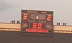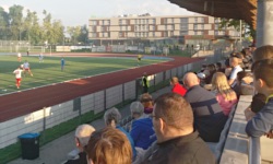 Z atmosferą w Nowym Targu jest jeden podstawowy problem. Co prawda po wpisaniu w Google Images frazy Podhale Nowy Targ kibice można zobaczyć mnóstwo ciekawych obrazków - barwy, flagi, oprawy, doping... ale to wszystko dotyczy sekcji hokejowej, która zgodnie z moją wiedzą jest jedną z najlepszych w Polsce (przy czym, moja wiedza na temat hokeja ogranicza się do informacji, że kiedyś był na igrzyskach olimpijskich słynny mecz ZSRR kontra Kanada... albo USA - i wygrali wtedy albo Sowieci... albo ci drudzy). Stąd, występująca na 4. poziomie rozgrywkowym sekcja piłkarska, która oferuje np. mecze z Wisłą Sandomierz, raczej nie przyciąga tłumów. Na mecz przyszło ponoć ok. 100 osób (choć to jest oficjalne info, ja bym pewnie dał trochę więcej, tak do 150) i trybuny nie reprezentowały wielkiego fanatyzmu. Spiker co prawda ogłosił na początku meczu, że: Tych z Państwa, którzy właśnie dochodzą, zachęcamy do gorącego i kulturalnego dopingu Jednak wbrew jego zapowiedziom, gorącego dopingu nie było, a jakby ktoś pytał, to nikt też nie doszedł na trybunie. Były głównie oklaski dla gospodarzy po różnych udanych zagraniach. A że pod koniec meczu udanych zagrań gospodarzy było już naprawdę dużo, trybuny nawet parę razy zaintonowały: NKP! Podhale! .