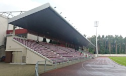 Alytaus stadionas, czyli Stadion Olicki, położony jest na południowych przedmieściach Alytus, gdzie znajdują się już tylko domki jednorodzinne. Stadion sąsiaduje z miejskim parkiem, a jakiś kilometr na południe od niego znajdują się jakieś jeziorka. Sam stadion położony jest w zasadzie w lesie i ze wszystkich stron otaczają go drzewa. Zgodnie z info z Wikipedii, stadion liczy aktualnie 3748 miejsc i ostatnio był odświeżany w 2010 roku.