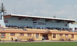 Jak już zostało to mimochodem wspomniane, naprzeciw trybuny północnej - Krytej, znajduje się trybuna południowa - Odkryta. Architektonicznie różni się ona znacznie od tej Krytej - o ile Kryta to pewnego rodzaju improwizacja, czyli tak naprawdę budynek klubowy z krzesełkami, to trybuna Odkryta to po prostu standardowa trybuna stadionowa licząca na oko jakieś 1500 miejsc (krzesełka na trybunie są w barwach czerwono-niebieskich). Co prawda zasiadaniu na trybunie Odkrytej nie towarzyszy aż taki splendor jak na trybunie Krytej (2 PLN robi różnicę - toż to jeden Żubr, czy inny Kustosz), ale jej główną zaletą jest fakt, ze w słoneczne dni słońce nie daje tam prosto w twarz. Dlatego też, wolałem oglądać mecz z perspektywy właśnie trybuny Odkrytej.
