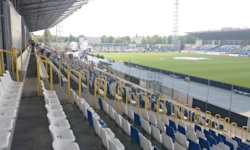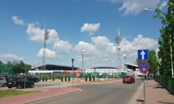 Aktualnie stadion na Solskiego to obiekt składający się z dwóch dość podobnych trybun, liczących łącznie 6800 miejsc siedzących - teoretycznie wszystkie są zadaszone, choć w przypadku deszczu zapewne okazałoby się, że w pierwszych rzędach można zmoknąć. Pewnym problemem jest fakt, że trybuny są dosyć niskie i nie mają odpowiedniego nachylenia - po dodatkowym uwzględnieniu bieżni, reklam, itp. wszystko to sprawia, że widoczność na stadionie jest średnia (zdecydowanie gorsza niż w Stalowej Woli i w sumie chyba gorsza niż w Gorzycach), a z perspektywy pierwszych rzędów w zasadzie zła - ja na szczęście kupiłem sobie bilet wcześniej przez Internet, w miejscu w miarę przyzwoitym, zarówno jeśli chodzi o odległość od linii środkowej jak i o numer rzędu. Miałem też szczęście pod tym względem, że mało brakowało, a nieświadomie kupiłbym miejsce... w młynie, który zaczynał się w sektorze obok. W zasadzie, to można powiedzieć, że miałem ze swojego miejsca 10 metrów do strefy VIP i 10 metrów do młyna.