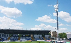 O ile dobrze pamiętam, Stal grała onegdaj na ciekawym PRL-owskim stadionie, na którym znajdowały się dwie dwupoziomowe (zgodnie z informacjami z Internetów, jak na zgrzebne standardy PRL-u było to bardzo nowatorskie rozwiązanie architektoniczne) żelbetowe trybuny z ławkami oraz bieżnia. Jakieś 10 lat temu w Mielcu wszyscy doszli do wniosku, że mają do wyboru - grać na stadionie pamiętającym złote czasy Kukli i Laty, ale niemożliwym do renowacji, czy zrównać to wszystko z ziemią i postawić coś zupełnie nowego. Zdecydowano się na drugą opcję - skasowano górny poziom trybun, a dolny przerobiono na coś bardziej funkcjonalnego i nowoczesnego. Ze starego stadionu pozostawiono za to ciekawe trójkątne maszty oświetleniowe, dziwną betonową konstrukcję łączącą obydwie trybuny za południową bramą... i niestety bieżnię.