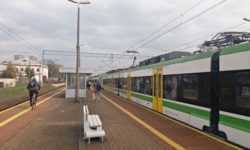 Bior¹c pod uwagê, ¿e wczeœniej tego samego dnia ogl¹da³em porywaj¹cy mecz okrêgówki w O¿arowie Mazowieckim, moja droga do B³onia rozpoczê³a siê w³aœnie w tym mieœcie. Po koñcowym gwizdku uda³em siê ze stadionu O¿arowianki na stacjê kolejow¹ w O¿arowie Mazowieckim, sk¹d o 13:39 odje¿d¿a³ poci¹g Kolei Mazowieckich relacji Warszawa Wschodnia - £owicz G³ówny. W³aœciwy dworzec by³ aktualnie w remoncie, tote¿ odjazdy poci¹gów mia³y miejsce z bardzo interesuj¹cego zaimprowizowanego peronu utworzonego chyba dos³ownie z ziemi i dykty. Po zaledwie 11 minutach jazdy (w trakcie których ledwo zd¹¿y³em kupiæ bilet u konduktora) by³em ju¿ na miejscu, poniewa¿ B³onie znajduj¹ siê w tym samym powiecie co O¿arów Mazowiecki.