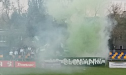 Przyznam szczerze, ¿e wybieraj¹c siê na mecz do B³onia (a tym bardziej na mecz z Pelikanem), nie spodziewa³em siê ¿adnych wielkich kibicowskich klimatów (istnieje co prawda takie coœ jak Równina £owicko-B³oñska, ale jakoœ nikt z tego powodu nie nazwa³ meczu derbami ). A tu proszê - na trybunie po³udniowej pojawi³a siê ok. 30-osobowa grupa kibiców z flag¹ KS B£ONIANKA oraz flagami Nigerii zielono-bia³o-zielonymi machajkami. Jeszcze przed pierwszym gwizdkiem rozwinêli oni równie¿ miniaturow¹ sektorówkê (czarn¹ flagê z bia³ym napisem o treœci... PATOLOGIA ), pod któr¹ schowa³o siê kilku kibiców celem odpowiedniego przysposobienia siê do odpalenia pirotechniki. Ju¿ w 3. minucie meczu odpalili kilka rac oraz bia³o-zielonych œwiec dymnych, a potem prowadzili doœæ wytrwa³y doping wraz z machaniem flagami przez ca³¹ 1. po³owê. W drugiej po³owie doping by³ du¿o bardziej spokojny i ruszy³ tak naprawdê dopiero w 65. minucie, co mog³o mieæ zwi¹zek z wizyt¹ na sektorze funkcjonariuszy policji, którzy chyba wypisywali kibicom mandaty (?).