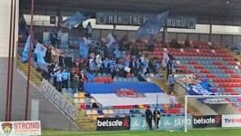 Poza zblazowanym piknikiem mieliśmy na szczęście na stadionie dwie grupy kibicowskie, które przez cały mecz prowadziły doping. Przede wszystkim, mieliśmy kilkudziesięcioosobową grupę kibiców godpodarzy, którzy byli ulokowani na trybunie zabramkowej. Większość z nich miała na sobie jasnoniebieskie koszulki oraz szaliki klubowe, a ponadto mieli parę bębnów, kilkanaście flag do machania i kilka flag rozłożonych na sektorze (flagi nie miały na sobie złożonych haseł, właściwie na każdej z nich znajdował się napis RIGA , bądź RIGA FC ), w tym na oko 7-metrową niebiesko-białą flagę miasta. Dopingowali oni dość wytrwale swoją drużynę, nie zrażając się serwowaną przez piłkarzy padaką. Z kolei na południowym skraju trybuny wschodniej (prostej) znajdowała się kilkudziesięcioosobowa grupa kibiców gości. Była ona mniej spektakulna - tylko część osób miało na sobie ciemnoniebieskie szaliki. Opróćz tego mieli jednak kilka flag do machania, a w górnej części sektora powiesili cztery niebieskie flagi, w tym dwie z herbem klubu i jedną o treści TU UN ES PAR RFS (Ty i ja za RFS ). Po końcowym gwizdku obydwie grupy odpaliły po kilka rac - gośćie z racji zwycięstwa swojej drużyny, a gospodarze z racji tego, że... skoro już je wnieśli ciekawe gdzie, to szkoda byłoby je zmarnować.