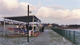 Minusem trybuny jest fakt, że z niewiadomego powodu znajduje się ona całe 16 metrów od linii bocznej boiska (patrząć od trybuny, najpierw jest kostka, potem pas trawy, potem ogrodzenie, potem znowu pas trawy i w końcu linia boczna). Chociaż to i tak jest progres, bo kiedyś podobno trybuny nie było, a mecz oglądało się z wału chroniącego przed wylewaniem pobliskiego stawu. A rzeczony wał jest jeszcze dalej niż obecna trybuna.