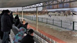 Na przebieg dzisiejszego meczu rzutowała pogoda - murawa była pokryta piękną białą warstwą śniegu. Piłkarze obydwu drużyn wyszli na boisko z różnego rodzaju czapkami, kołnierzami i innymi elementami ubioru, które chyba nie są dopuszczane przez przepisy FIFA, ale ani sędzia, ani obserwator nie mieli większych obiekcji. Piłkarze poruszali się po murawie nieco niezdarnie, mieli pewne problemy z kontrolowaniem żółtej piłki (dobrze, że piłka nie była biała, ponieważ powinna się wyrażnie odróżniać od boiska... ale z perspektywy trybuny nie była to jakaś wielka poprawa), a czasami nawet z utrzymaniem równowagi. W trakcie meczu mieliśmy kilka przypadków źle wyrzuconych autów, ale nie wiem, czy to również było spowodowane pogodą. Teoretycznie cały ten chaos powinien faworyzować słabszą drużynę (Sęp jest w czołówce ligi, podczas gdy Kolektyw bierze udział w walce o spadek), ale... no, już po wyniku widać, że tak nie było.