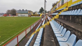 Stade Jos Nosbaum to kompaktowy obiekt upchnięty w dość karkołomny sposób na wzniesieniu na przedmieściach miasta. Zgodnie z oficjalnymi danymi, stadion liczy 2558 miejsc siedzących. Nie mam dokłądnych danych na temat pojemności poszczególnych trybun, ale ok. 1000 miejsc należy przypisać do głównej trybuny stadionu. Trybuna ta liczy pięć rzędów czerwonych, białych i żółtych (dość nieoczekiwanie, kolor żółty jest podstawowym kolorem klubowym drużyny F91 Diddeleng) krzesełek. W centrum znajdują się krzesełka białe i żółte, które przeznaczone są dla posiadaczy karnetów (standardowo, jak to na Zachodzie, RODO nie jest chyba traktowane poważnie i na krzesełkach naklejone są personalia posiadaczy karnetów), a bardziej po bokach znajdują się czerwone krzesełka z domieszką białych siedzeń, które tworzą dwa napisy F91 . Trybuna jest nieco ciasna, a zadaszenie położone dosyć nisko, ale niewątpliwym plusem jest fakt, że z przodu nie podpierają go żadne filary. Dodatkowo, trybuna jest lekko podniesiona względem poziomu boiska, a odległość pomiędzy nią a linią boczną jest na tyle mała, że odbiór wydarzeń boiskowych jest naprawdę dobry. Jedynym problemem jest fakt, że nie zawsze dobrze widać, co właściwie dzieje się przy samej linii bocznej.