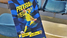 Ku mojemu zdziwieniu, w porównaniu do poprzednich relacji coś się w końcu ruszyło. Już jadąc rowerem na mecz dostrzegałem na słupach ogłoszeniowych estetyczne plakaty zapraszające na dzisiejsze wydarzenie. Pod samym stadionem też bardzo się ucieszyłem, że wejście w końcu nie było darmowe, a należało zakupić bilet w kasie (niezbyt dobrze dogadałem się w kasie i zamiast biletu normalnego na zwykły sektor przypadkowo wydębiłem bilet ulgowy na sektor zadaszony - ale nie skorzystałem z bezprawnego przywileju i zasiadłem na standardowym sektorze). Po wejściu na teren stadionu ucieszyłem się z kolei, że rozchodziła się na nim miła Panu woń ofiary całopalnej woń grilla - na stadionie sprzedawano giętą, piwo i różne napoje! Co prawda nie skorzystałem z oferty (grill czekał na mnie w domu), ale z nieukrywaną radością przyjąłem fakt, że coś się tu w końcu ruszyło pod względem organizacji. Do pełni szczęścia brakowało już chyba tylko stoiska z pamiątkami.