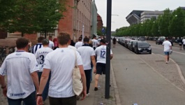 Idąc na mecz w kierunku stadionu czułem się nieco nieswojo, ponieważ jako jedna z niewielu osób byłem ubrany na czarno, podczas gdy większość sunącego w kierunku stadionu tłumu miała na sobie białe barwy klubowe. Co ciekawe, w pewnym momencie zorientowałem się, że w tłumie idącym na stadion są przemieszani kibice gospodarzy oraz gości (zresztą, ciężko ich było rozróżnić, bo zarówno FCK jak i AGf noszą się na biało) i nie dochodzi do żadnych animozji. To było takie dziwne i zarazem takie... normalne.