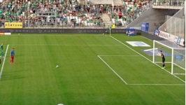Trybuny są bardzo estetyczne, co zapowiada, że stadion po ukończeniu będzie wyglądał naprawdę dobrze. Na razie jednak przestrzeń za obiema bramkami wygląda raczej śmiesznie - po obydwu stronach jest pusta przestrzeń, za którą znajduje się wysokie ogrodzenie z reklamami. Za jedną z bramek przestrzeń ma zostać docelowo zagospodarowana na jakiś sektor gości, ale jak na razie prace jeszcze nie ruszyły i jak na razie kibice gości nie są po prostu przyjmowani. O konsekwencjach tego powiemy sobie pokrótce w kolejnej sekcji...