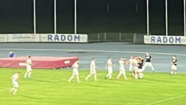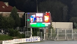 Trochę mało wyszło tekstu w tej sekcji, a więc wspomnę jeszcze, że przed meczem i w przerwie meczu na stadionie z głośników rozlega się fatalna muzyka z gatunku, który nazywa się chyba latino. W każdym razie, obiekt MOSiR Radom przyzwyczaił mnie już do tego, bo przez lata słyszałem tu przeróżne wynalazki, takie jak disco polo czy też... niemiecki Schlager traktujący o Lukasie Podolskim. A, i jak zwykle na stadionowym telebimie znajdują się niedziałające martwe pola - tym razem przybrały one postać kolorowych podłużnych prostokątów.