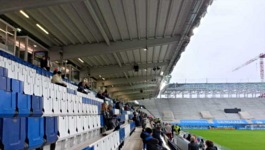 Poza dwiema trybunami prostymi i dwiema nowoczesnymi trybunami zabramkowymi (z czego jedna jest ciągle w budowie), przy jednym z narożników boiska znajduje się bardzo specyficzny sektor, który jest przeznaczony dla kibiców gości. Nie wiem, czy jest to jakaś tymczasowa dostawka, czy może fragment starej południowej trybuny zabramkowej (czyli starej curvy - hehe, łapiecie?), w każdym razie, chciałem zaznaczyć, ze poza omawianymi już tutaj czterema trybunami, na stadionie znajduje się jeszcze piąta.