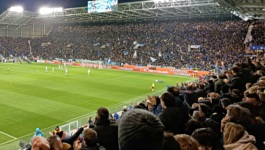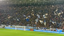Jeśli chodzi o młyn gospodarzy, Curva Nord była dziś pełna, co oznacza dobre kilka tysięcy gardeł. I rzeczywiście, kiedy wszyscy kibice Atalanty zaczynali śpiewać, uderzenie było konkretne. Niestety, ze względu na barierę językową, nie jestem w stanie przytoczyć zbyt wiele przyśpiewek (co więcej, na nic mi się nie przydał fakt, że znałem już słowo Vaffanculo , bo dzisiejszego dnia ono chyba nie padło). Na trybunie wisiało wiele flag, a największymi były te o treści ATALANTA FACCI SOGNARE oraz VECCHIA GUARDIA . Kibice przez cały mecz machali różnymi flagami (to chyba włoski standard jeśli chodzi o kibicowanie), a po golu na 1:0 odpalili nawet kilka rac, które dawały dużo więcej dymu niż światła (to też jest chyba standard we Włoszech). Jeśli chodzi z kolei o kibiców gości, wypełnili oni zdecydowaną większość swojego sektora i również poobwieszali go różnego rodzaju flagami, a także przez cały mecz prowadzili doping i machali flagami-machajkami. Co ciekawe, w przeciwieństwie do wczorajszego meczu, tym razem nie mieliśmy żadnych flag o treści Curva Nord , pomimo tego, że fanatycy obydwu grających dziś drużyn zajmują właśnie północne trybuny na swoich domowych stadionach.