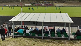 Poumieszczane jest w tym przypadku dość adekwatnym słowem, ponieważ poszczególne trybuny i trybunki tworzą tu trochę miszmasz. Największym sektorem jest ten położony po zachodniej stronie stadionu, który liczy nieco ponad 300 krzesełek w kolorach białym i czerwonym. Tuż obok tego sektora znajduje się dostawka złożona z kilkudziesięciu krzesełek, tym razem już w kolorze zielonym. Reszta miejsc siedzących położona jest na wschodniej części nasypu stadionu - jest to przede wszystkim sektor składający się z 100-150 krzesełek znajdujących się niemal na poziomie murawy (z czego ok. 30 objęte jest zadaszeniem). Ponad tym sektorem, na samym szczycie nasypu znajdują się się z kolei dwie dość zabawnie wyglądające trzyrzędowe trybunki... liczące po 11 miejsc siedzących (nie jest to czeski błąd, rzeczywiście było ich po 11). Na wschodniej części nasypu znajduje się również sektor gości , który składa się z dwoch niewielkich trybun - jedna znajduje się na szczycie nasypu (kolor krzesełek zielony), a druga na nasypie niewiele powyżej poziomu murawy (krzesełka w kolorach białym i czerwonym).