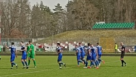 Na dzisiejsze derby województwa lubuskiego piłkarze wystroili się dość specyficznie, ponieważ Carina zagrała na zielono, a Stilon na niebiesko. Oczywiście, rozumiem, że są to podstawowe barwy obydwu tych drużyn, ale jednocześnie kolory te są do siebie na tyle podobne, że czasami miałem problem z rozróżnianiem piłkarzy i ze zrozumieniem tego, co dzieje się na boisku (disclaimer - nie jestem daltonistą). Od samego początku meczu na boisku przeważali, a pierwszą dobrą okazję mieli oni już w 8. minucie, gdy jeden z piłkarzy Stilonu z bliska oddał niecelny strzał głową (bramkarz Mateusz Kustosz krzyknął tylko do swoich obrońców Kurwa mać! , bo napastnik zbyt łatwo doszedł do tej sytuacji). Z kolei w 11. minucie obrońca Cariny zbyt łatwo dał się wyprzedzić w polu karnym Emilowi Drozdowiczowi, po czym w głupi sposób odepchnął go, co poskutkowało karnym dla Stilonu. Rzut karny bezbłędnie wykonał Adrian Łuszkiewicz.
