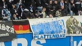 Na długo przed pierwszym gwizdkiem pod stadionem panowała atmosfera niemieckiego dnia meczowego. Rzesza (hehe) ludzi w klubowych barwach FCH kręciła się pod obiektem, racząc się piwem oraz wurstami. Po zakupie szalika w sklepie oraz odebraniu za dodatkową opłatą wydrukowanego biletu w kasie (swoją drogą, bilet był dosyć śmieszny, ponieważ poza napisem Ostseestadion chyba nigdzie nie było czegokolwiek, co wskazywałoby na Hansę - za to na środku znajdował się wielki na pół biletu napis SV Sandhausen ) udałem się na właściwy teren obiektu (za bramkami biletowymi). Tam zacząłem próbować różnego rodzaju niemieckie specjały stadionowe, ale o tym dopiero w kolejnych akapitach. Stadion powoli się zapełniał, a ja zidentyfikowałem w międzyczasie młyn gospodarzy, który był dość nietypowo ulokowany, bo w jednym z narożnych sektorów stojących (początkowo wziąłem go za sektor gości - w rzeczywistości ten znajdował się w innym narożniku). Jednak jeszcze przed pierwszym gwizdkiem zwróciłem uwagę, że na znajdującej się naprzeciw rzekomego młynu trybunie zabramkowej (co prawda pokrytej krzesełkami) również widać oznaki, że to stamtąd będzie prowadzony doping. Wskazywała na to m.in. obecność gniazda jak i różnego rodzaju flag (z czego szczególnie spodobały mi się flaga Plattenbau , co jest niemieckim określeniem na wielką płytę oraz... flaga DDR). W trakcie meczu okazało się, że w sumie to miałem rację - obydwa sektory były sektorami dopingującymi i można powiedzieć, że na stadionie znajdowały się dwa młyny. Czasami te młyny ze sobą konkurowały, a czasami śpiewały coś wspólnie. Ze względu na barierę językową, nie jestem w stanie przytoczyć żadnych tekstów piosenek, poza jedną (raczej nieskomplikowaną), która była śpiewana w popularnym rytmie z Aidy : Oleeeee, Hansa FCH, Hansa FCH! Hansa FCH! FCH! FCH! FCH!