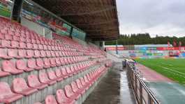 No dobra, a co z samym stadionem? Trybuna prosta składa się z jednolitych czerwonych krzesełek i liczy ok. 1200 miejsc siedzących. Na stadionie na szczęście nie ma bieżni, stąd trybuna znajduje się w bliskiej odległości od boiska. Trybuna jest w pełni zadaszona. Naprzeciw trybuny znajduje się dziwna budka z dwoma wąskimi prostokątnymi okienkami, co do złudzenia przypomina wielką tablicę wyników. NIe jest to jednak tablica wyników (choć być może kiedyś była), a stanowisko kamerzysty. Właściwa tablica wyników znajduje się za południową bramką - trochę konsternujący był fakt, że po jej obydwu stronach znajdowały się reklamy... KFC. Sport i fast food, każdy wie, że to idzie z sobą w parze (chyba, że reklama jest adresowana do tłustych pikników takich jak ja, wtedy to w sumie ma sens). A propos reklam, boisko z trzech stron jest dość szczelnie otoczone różnego rodzaju banerami reklamowymi, które skutecznie uniemożliwiają potencjalne obejrzenie meczu za darmo (a szczególnie dobrze by to wychodziło za trybuną zabramkową, ponieważ tamtejszy chodnik znajduje się kilka metrów powyżej poziomu boiska. Na boisku znajduje się w zasadzie obowiązkowa na tej szerokości geograficznej sztuczna murawa oraz standardowe islandzkie sztuczne oświetlenie o standardzie polskiej okręgówki (wyjątkowo nie miałem okazji zobaczyć jak się ono sprawuje, ponieważ ten mecz miał miejsce o 14:00 czasu lokalnego).