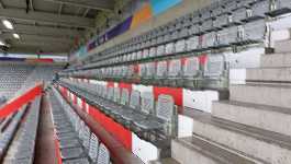 Z innych informacji, na stadionie znajdują się dwa telebimy, które umieszczone są na trybunach zabramkowych, na zadaszeniu (ale na szczęście nie zwisają z niego, dzięki czemu nie przesłaniają widoku ludziom na tych trybunach). Co ciekawe, na stadionie nie ma żadnych barier pomiędzy poszczególnymi trybunami, dzięki czemu w trakcie fotografowania obiektu doszedłem aż do przeciwległego narożnika (a mogłem pewnie i dalej, ale uznałem, że to już przegięcie). Na tyłach trybun oczywiście znajdowały się punkty cateringowe - w jednym z nich kupiłem bardzo smaczną lokalną kiełbasę za 8 CHF. Co ciekawe (i chyba charakterystyczne dla krajów z obszaru niemieckojęzycznego ), do kiełbasy nie dostałem żadnych sztućców i należało ją zjeść rękami. Na szczęście znalazłem sposób na oszukanie systemu, ponieważ w charakterze narzędzia chwytnego wykorzystałem bułkę, którą dostałem do posiłku.