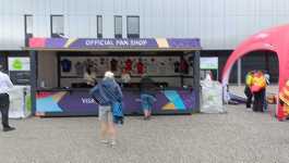 Po dotarciu pod Arena Thun/Stockhorn Arena udałem się w kierunku stoiska z oficjalnymi pamiątkami UEFA, ale po zapoznaniu się z cenami stwierdziłem, że tego dnia pozostanę neutralnym widzem w neutralnych barwach, który tego dnia chce po prostu popatrzeć na dobry futbol (bez ironii - reprezentacja Hiszpanii to była zdecydowanie najbardziej spektakularnie grająca drużyna na WEURO 2025). Gdy tak przechadzałem się pod stadionem, załapałem się na darmowe lody ze stoiska Lidla; co prawda po otworzeniu pudełeczka okazało się, że to nie lody, a owocki, ale za darmo i owocki dobre (tym bardziej, że obiektywnie były smaczne). Poza tym, miałem okazję zobaczyć większą grupę kibiców reprezentacji Hiszpanii, którzy przemaszerowali z centrum miasta na stadion wymachując flagami i śpiewając coś tam w swoim języku (którego nie jestem zbyt wielkim entuzjastą). Moje łażenie dookoła stadionu zakończyło się dość nagle i nieoczekiwanie, kiedy obejrzałem się w stronę zachodnią (w stronę m.in. szczytu Stockhorn) i stwierdziłem, że część horyzontu zakrywa biała ściana wody sunąca w naszą stronę. Ustawiłem się w kolejce do wejścia na trybunę i udało mi się znaleźć pod dachem zanim wszystko się zaczęło.