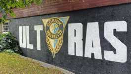 Po tym wszystkim na sektorze zagościły standardowe flagi kibicowskie (przy czym, ze względu na perspektywę nie wiem co dokładnie zawieszono, dostrzegłem jedynie flagę Karkonoszy Jelenia Góra oraz pięć porządnie wykonanych flag PDW) i wrócono do standardowego dopingu. Kibice pozdrawiali Polonię Świdnica, GKS Tychy i Zawiszę Bydgoszcz i generalnie prowadzili bardzo dobry doping. Zawołania były dodatkowo wzmocnione przez akustykę obiektu, ponieważ trybuna zachodnia wszystko odbijała z powrotem do nas. Z dłuższych przyśpiewek nie zapamiętałem zbyt wiele, zanotowałem jedynie fragment jednej (która ciągnęła się dużo dłużej niż to, co tu podałem): Na stadionie się spotkali, 'Górnik Wałbrzych' zaśpiewali, Dwa kolory mienią się - błękit nieba oraz biel! Jej oddałem serce swe, kocham Ją, a Ona mnie!