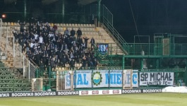 Poza kibicami gospodarzy, na meczu pojawiła się spora delegacja z Mielca. Ostatni raz widziałem grupę wyjazdową kibiców Stali... zaledwie 5 dni wcześniej, na meczu z Polonią Warszawa (przy czym, nie zrobiłem z tego meczu relacji), kiedy Stal przegrała na Konwiktorskiej aż 2:5. Kiedy po meczu piłkarze podeszli kurtuazyjnie do sektora gości podziękować im za doping, usłyszeli oni chyba wtedy wyłącznie: Wypierdalać! Wypierdalać . Na początku dzisiejszego meczu z sektora gości dobiegała cisza. Wydaje mi się, że na sektorze byli już w komplecie, więc był to albo znak dezaprobaty... albo znak żałoby (na płocie poza flagą wywiesili bowiem płótno Ś.P. Michał ). Kibice gości uaktywnili się mniej więcej po 10 minutach meczu (jeszcze przy stanie 0:0) i prowadzili ciekawy i urozmaicony doping. No, ale tym razem nic nie zanotowałem i nic nie mam do przytoczenia.